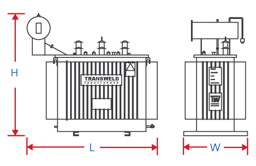 * For capacities above 3000 kVA, the standard dimensions will be provided based on the customer's request.